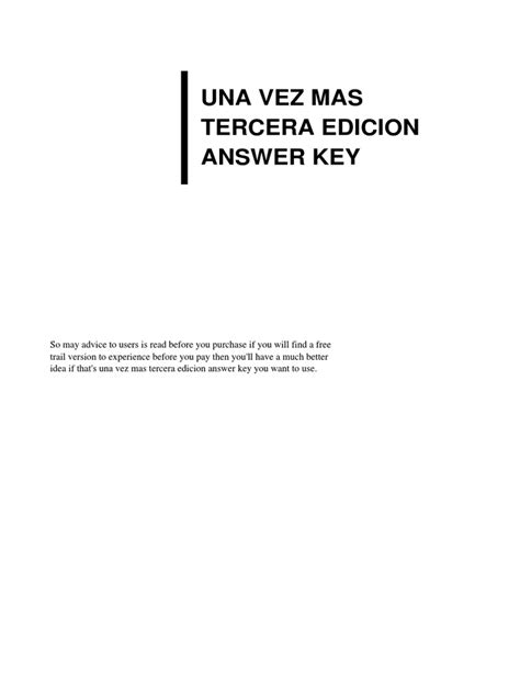 Read una vez mas answer key PDF online is a convenient and frugal way to read una vez mas answer key you love right from the comfort of your own home. Yes, there sites where you can get PDF "for free" but the ones listed below are clean from viruses and completely legal to use.